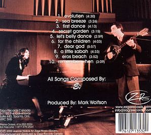 Evolution draws on the lively rhythms of Greek folk music, featuring traditional dances such as the Kalamatiano, Zembekio, and Karsilamas. The album also incorporates Greek Ancient (Byzantine) modes like The Sabbah, Hijaz, and Ousak, giving the songs an eastern Mediterranean flavor and character. Together, they blend Greek tradition with Western influences to create music that is both personal and widely appealing.